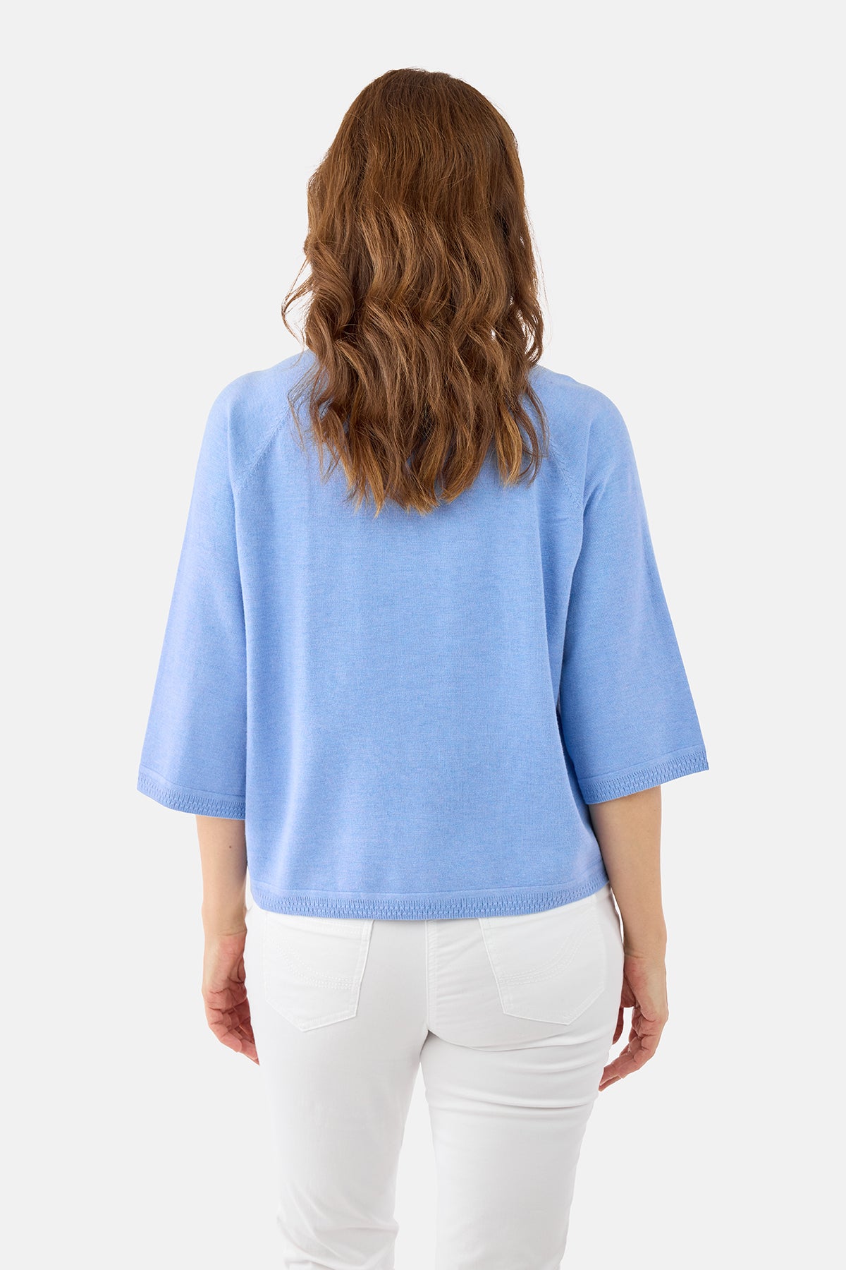 3/4 Ærmet Strik - Lyseblå - Rund Hals