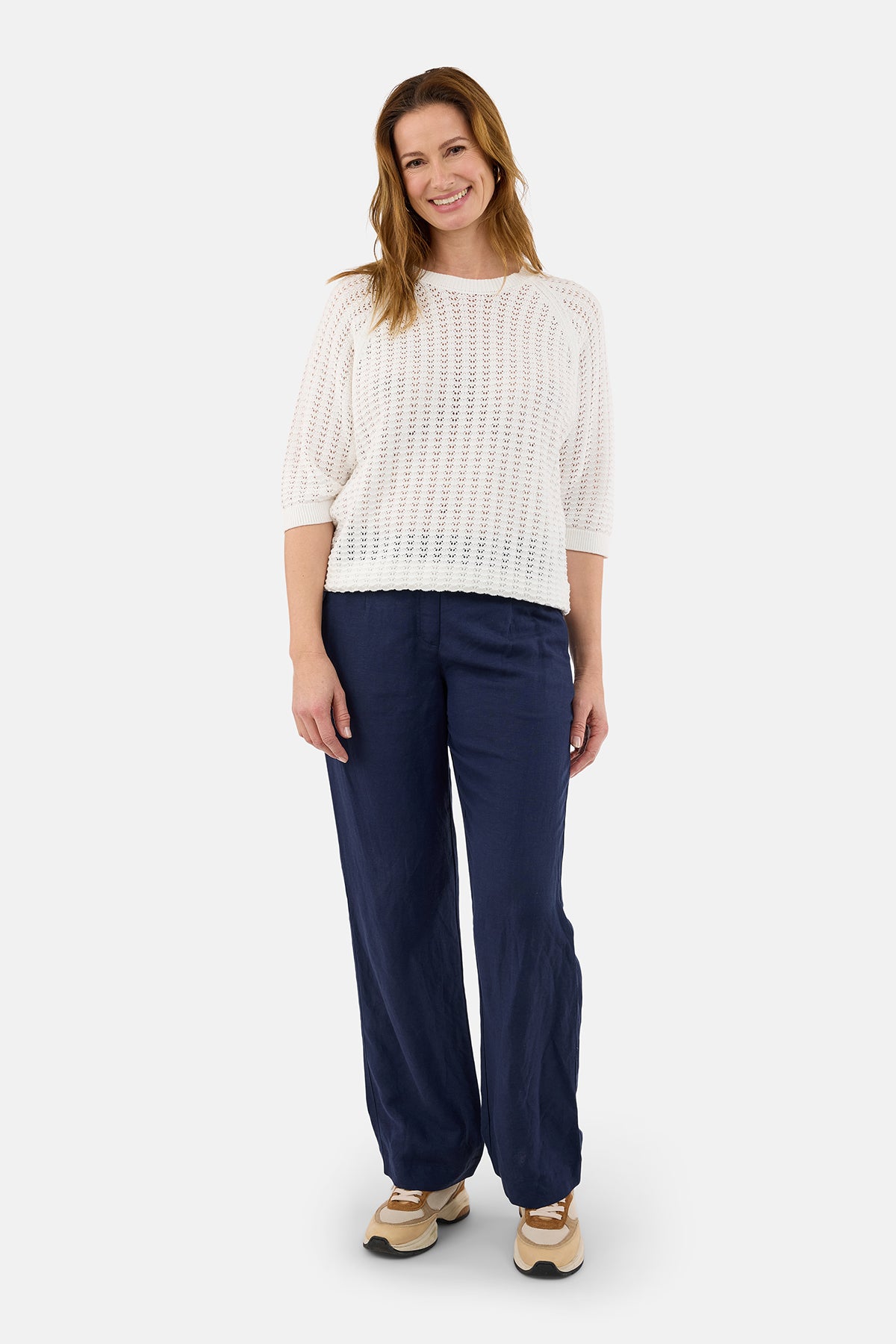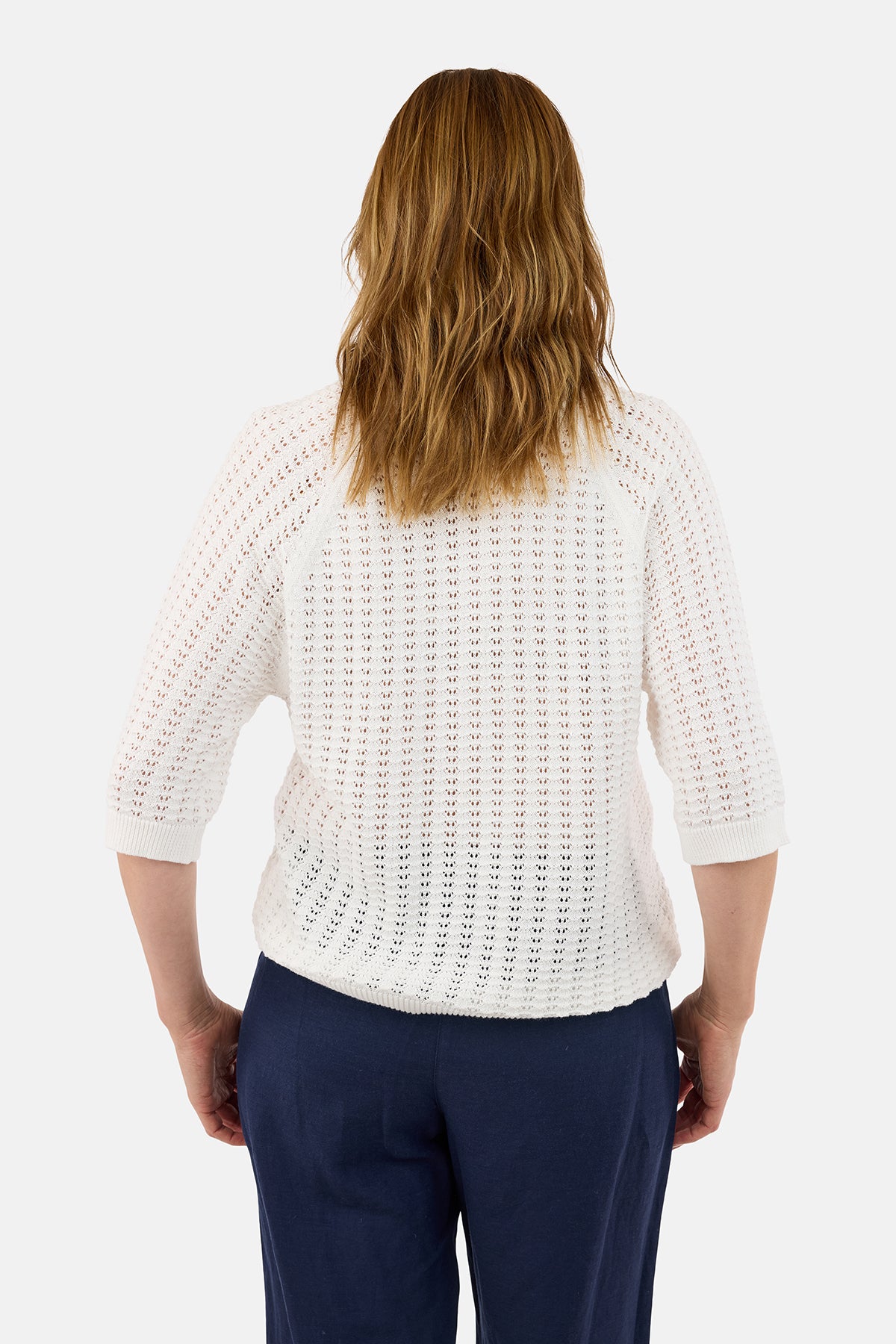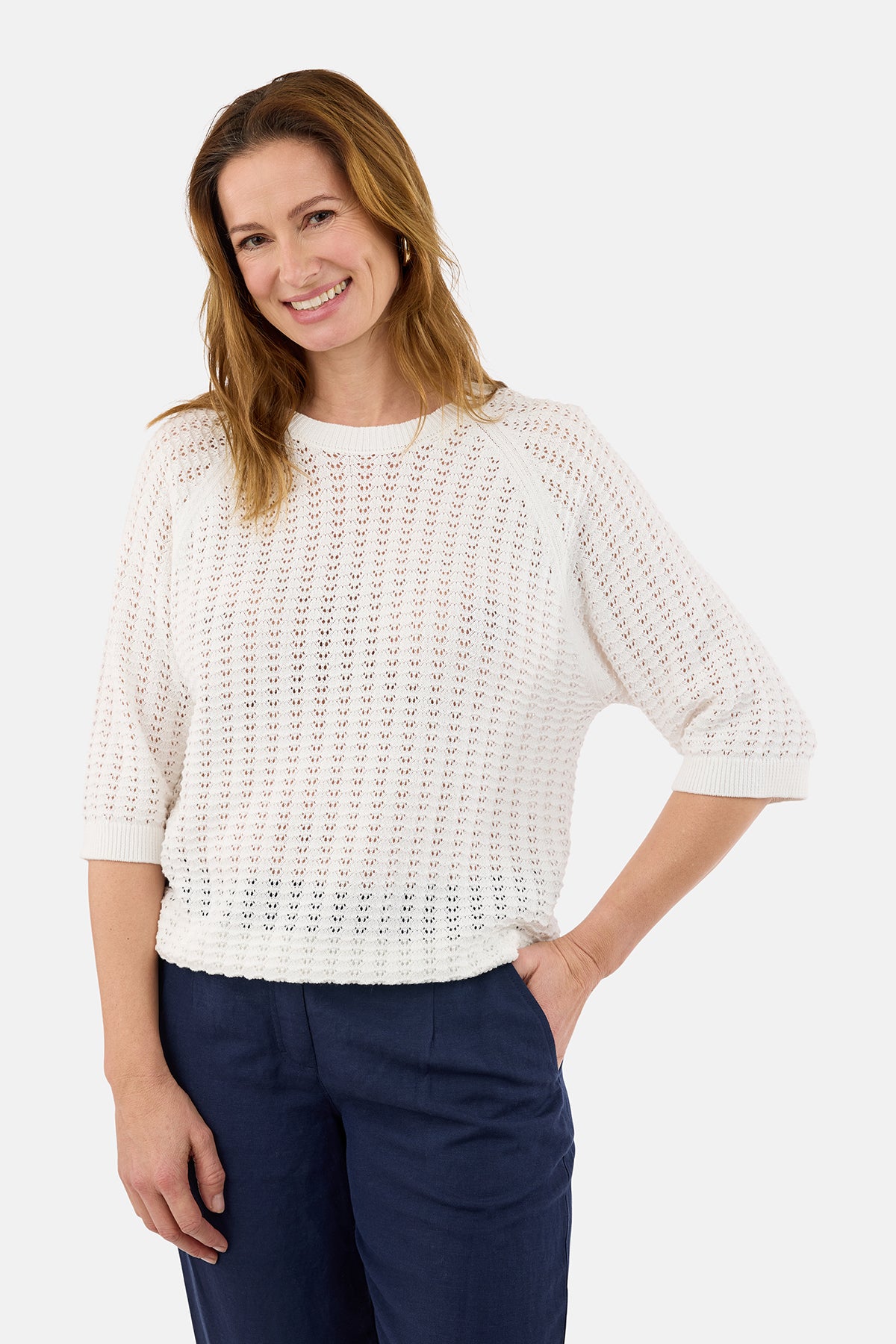 3/4 Ærmet Strik - Råhvid - Hulmønster