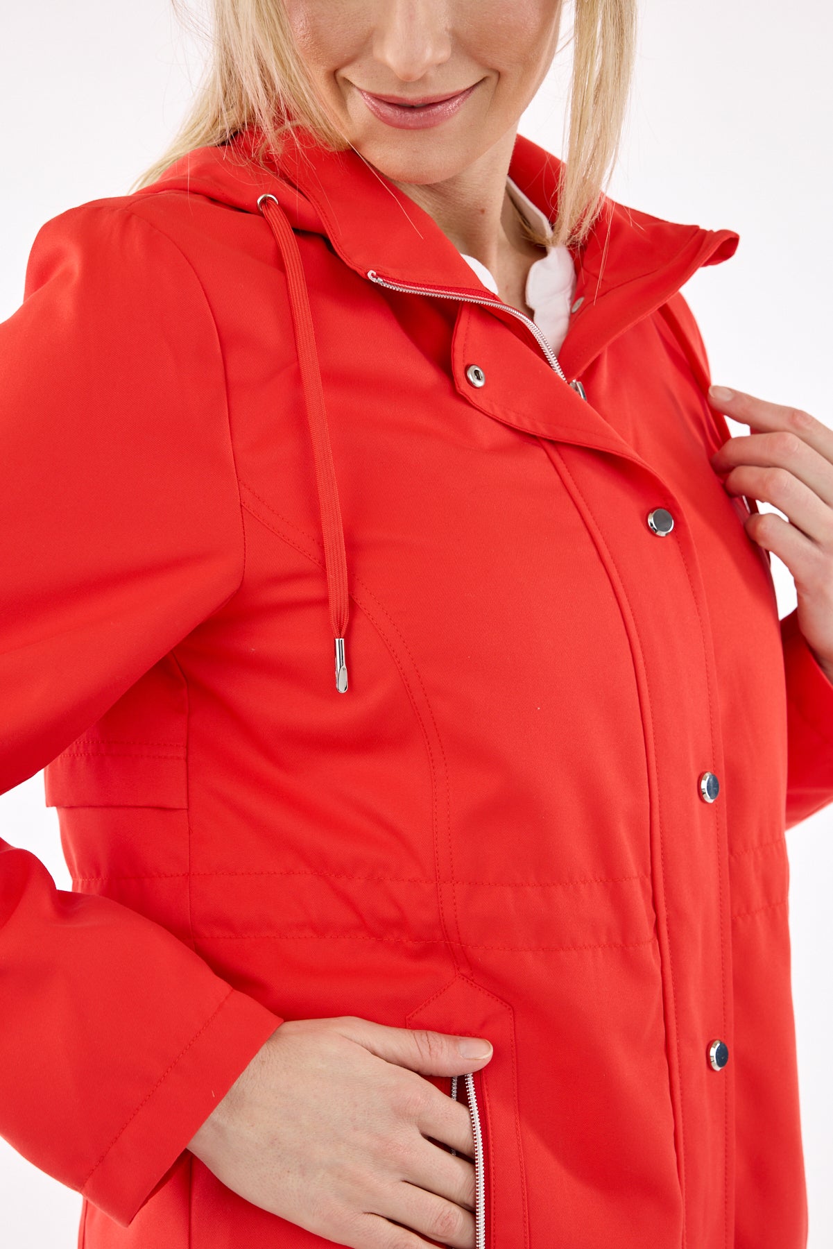 Jakke - Rød - Aftagelig Hætte