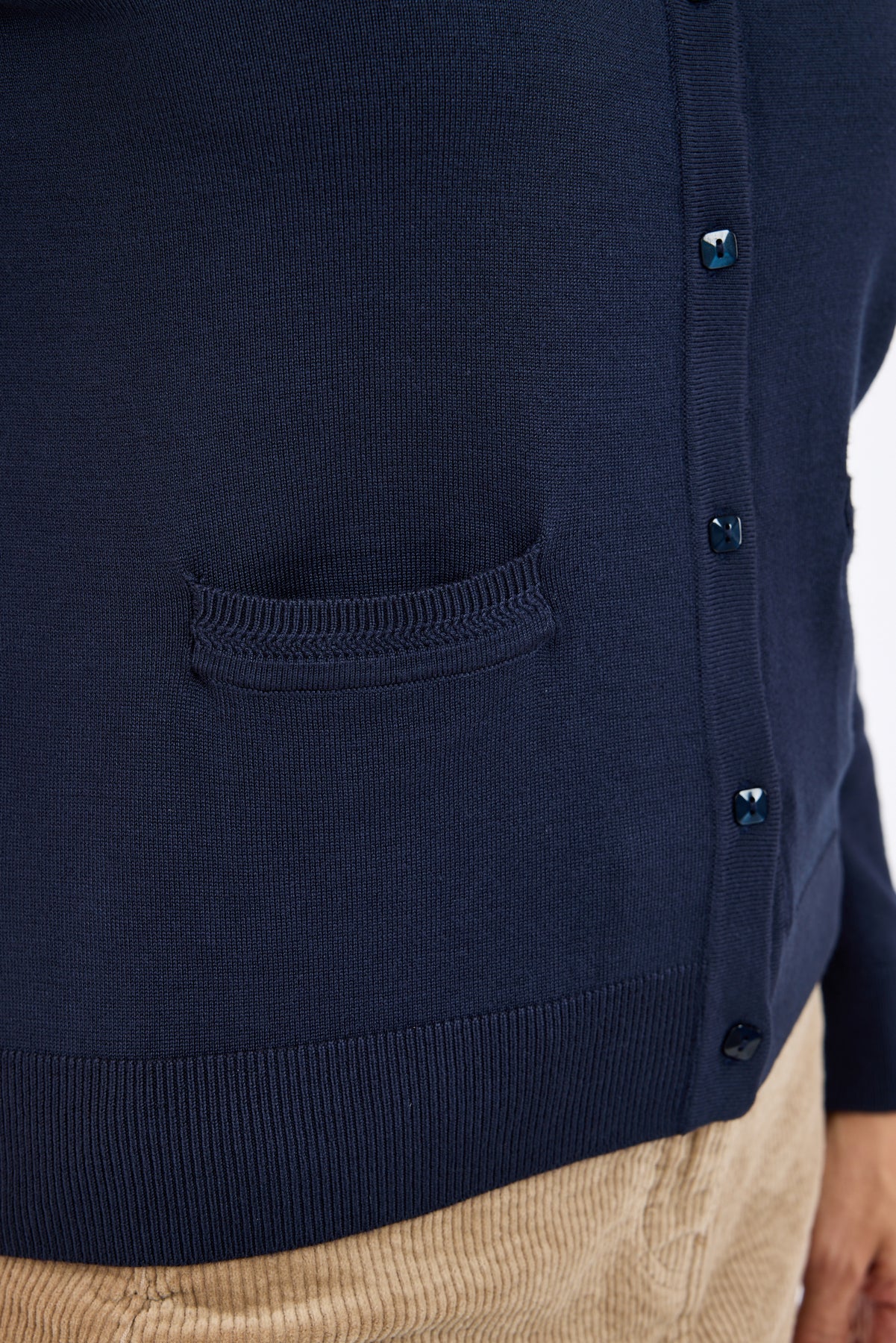 Langærmet Cardigan - Navy - Med Lommer