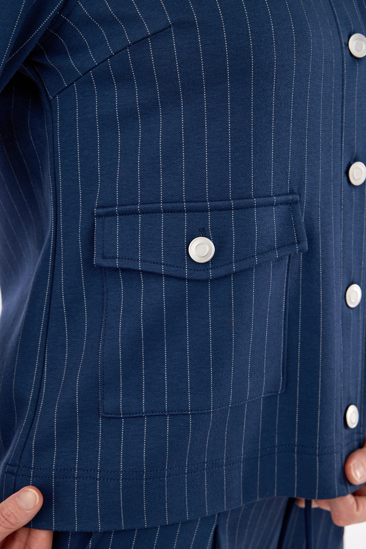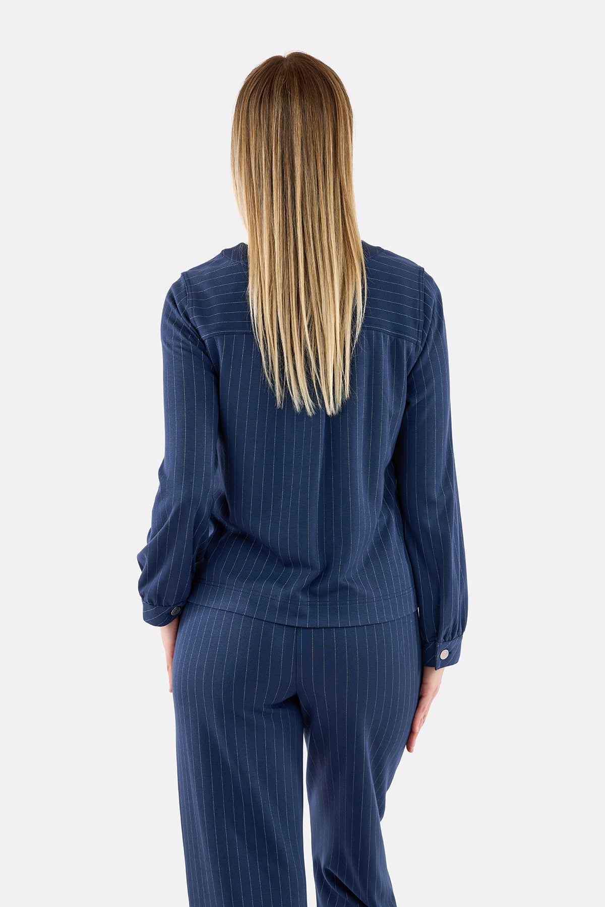 Let Jakke - Navy - Stribet med Knaplukning