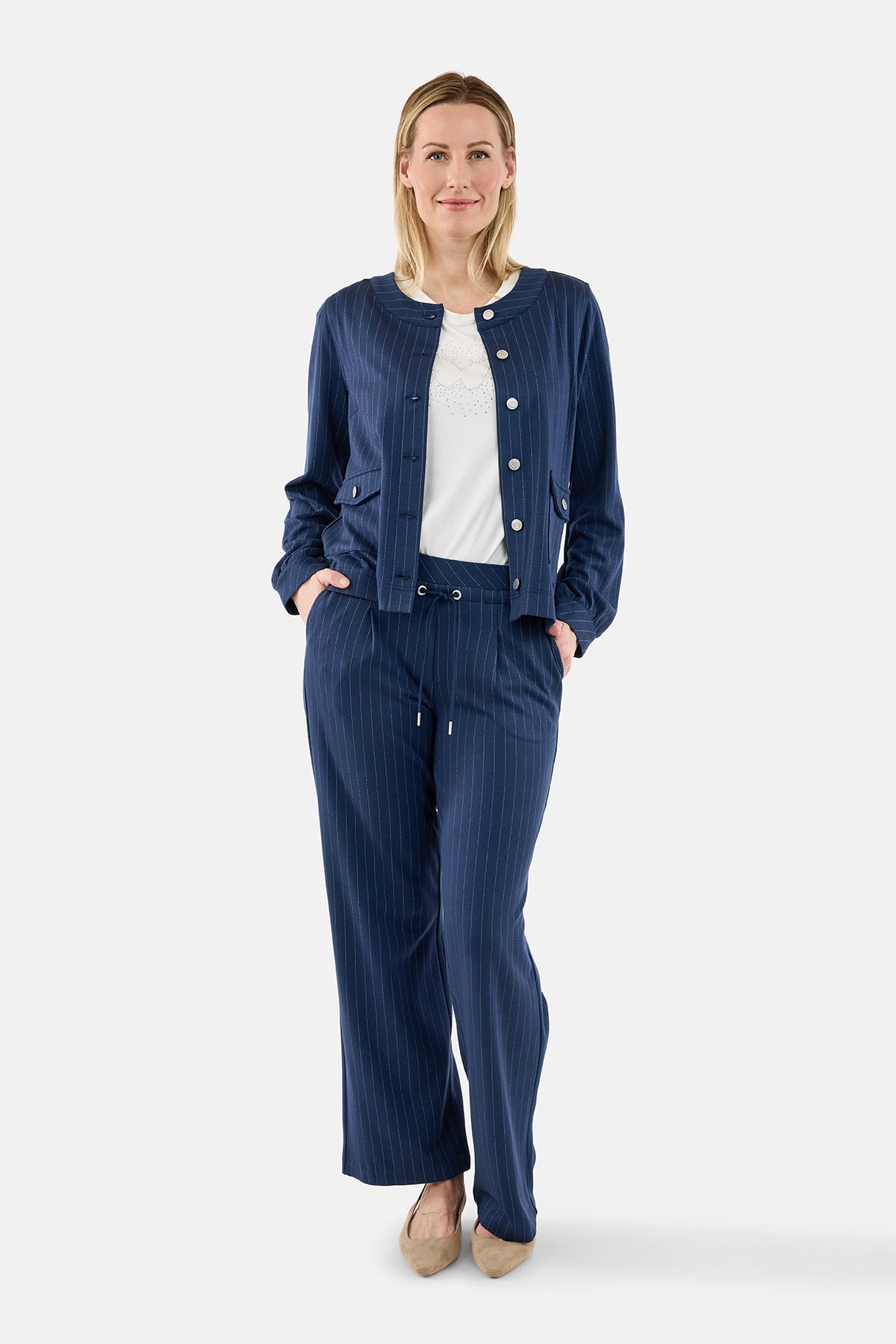 Klassisk jakke med et tidløst nålestribet design, der giver et velklædt og moderne udtryk. Jakken er udført i en blød og behagelig kvalitet, som sikrer god komfort og bevægelsesfrihed i hverdagen.