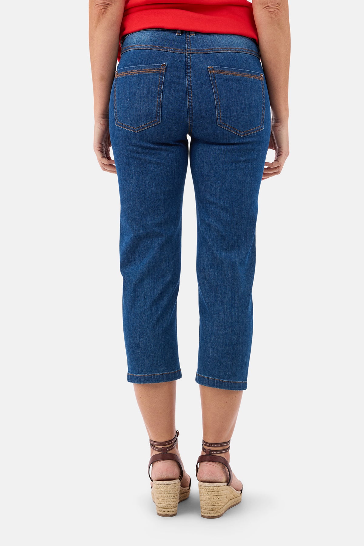 Klassiske Madelaine capri jeans i en flot denimblå vask, der giver et tidløst og anvendeligt look til sommergarderoben. Bukserne har en feminin og behagelig pasform med let stretch, som gør dem rare at have på hele dagen – uanset om du bruger dem til hverdag, ferie eller en afslappet dag på farten.