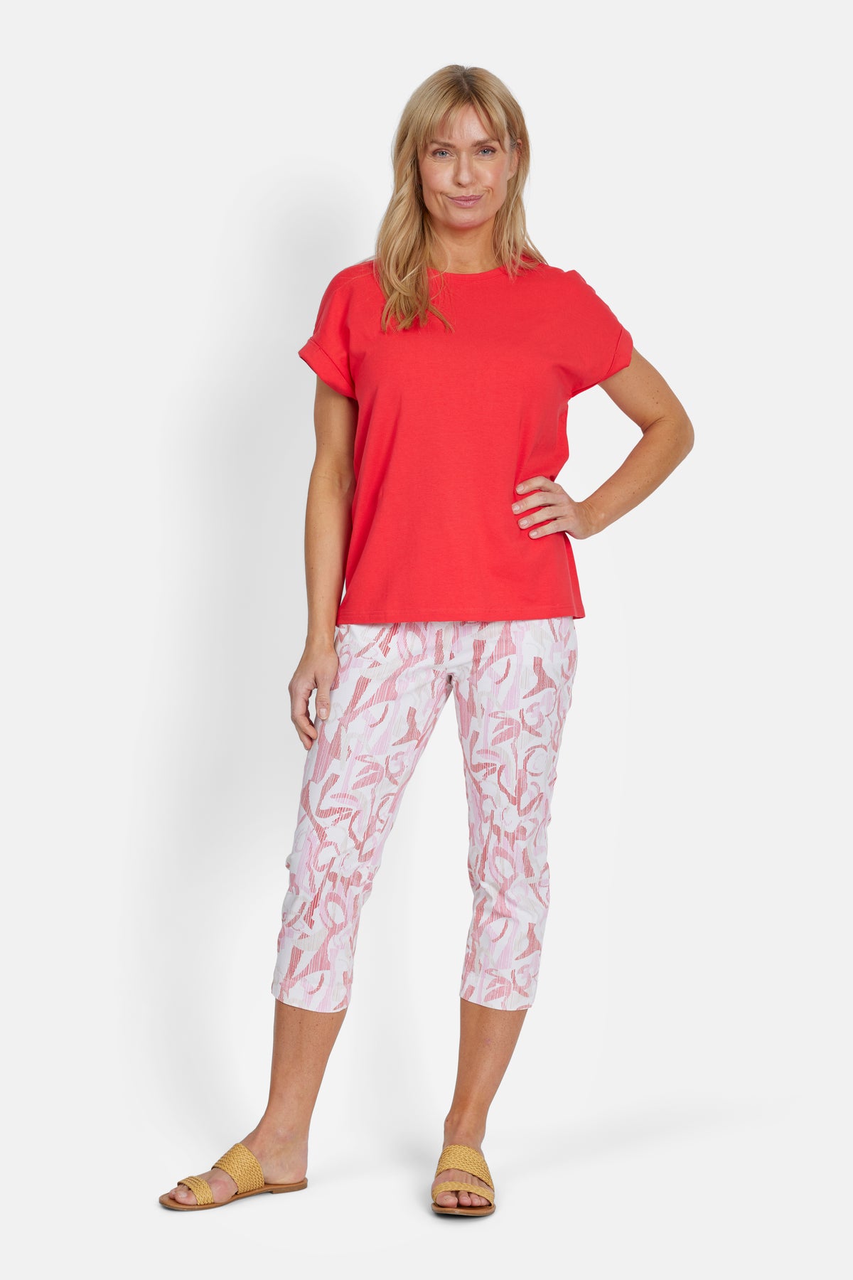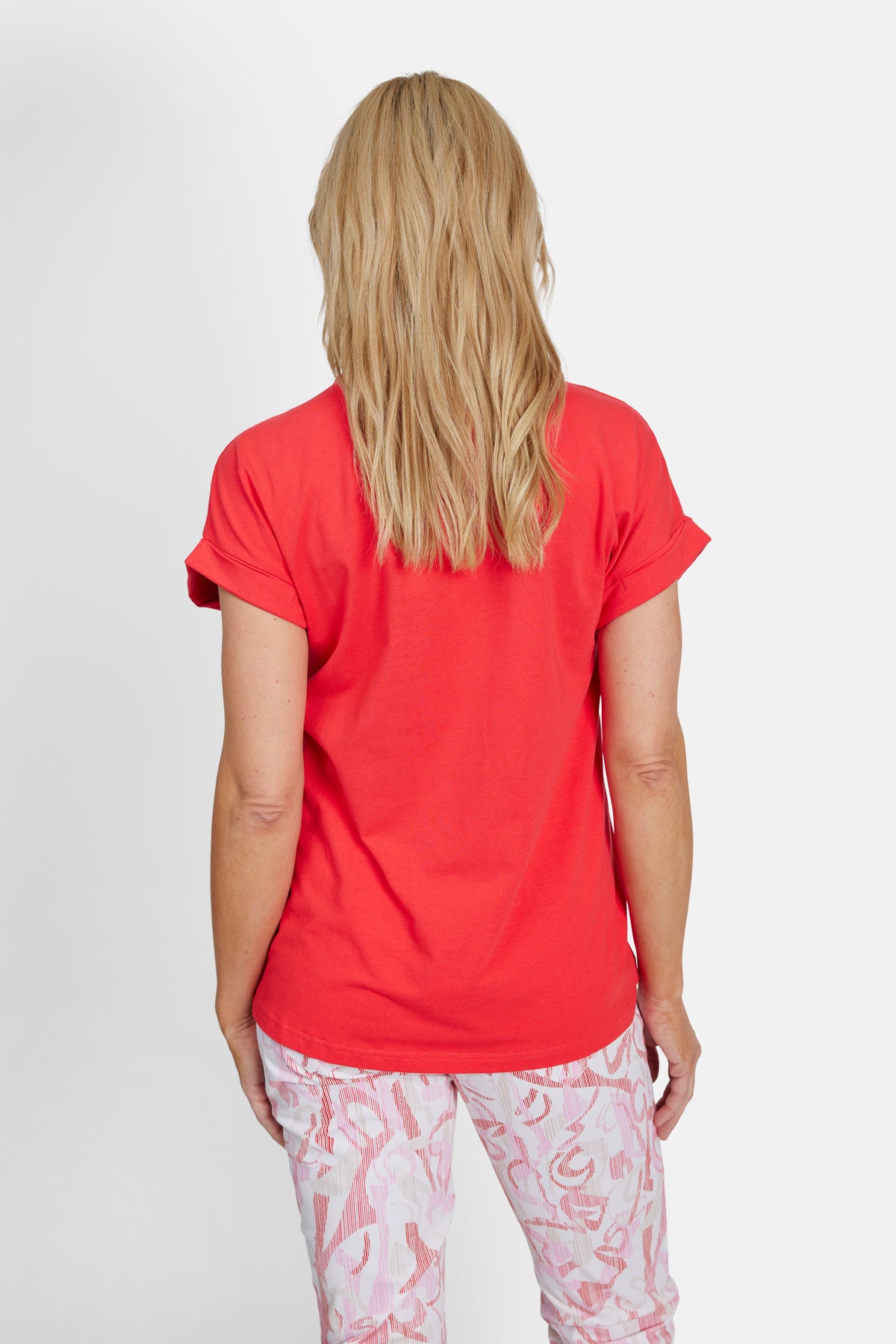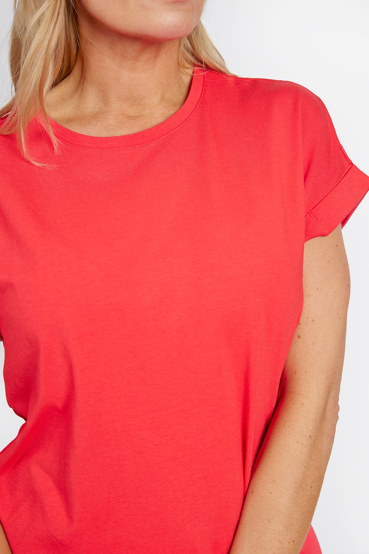 Kortærmet T-shirt - Koral Rød - Med Opsmøg