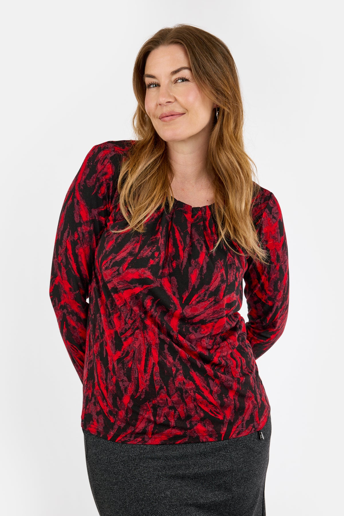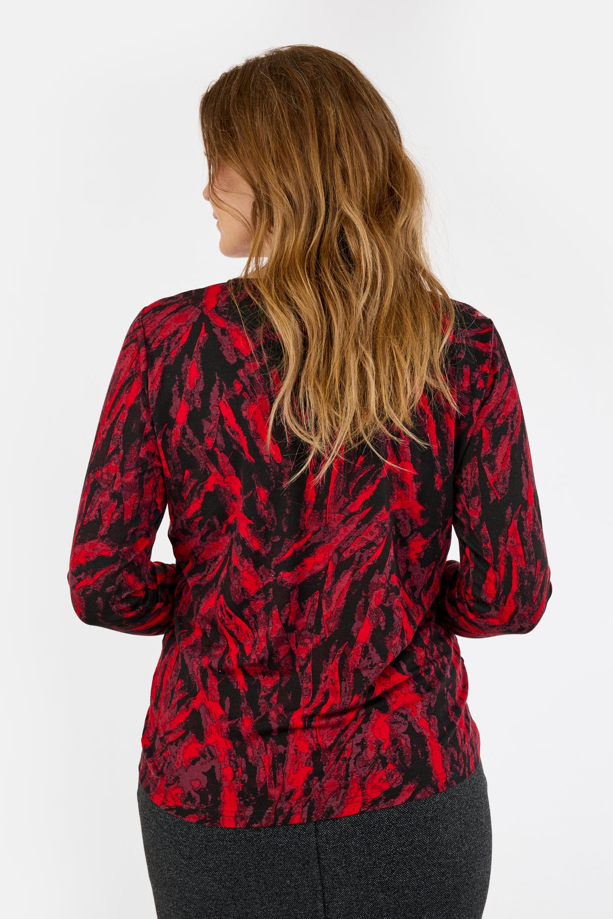 Langærmet T-shirt - Rød Mix - Mønstret